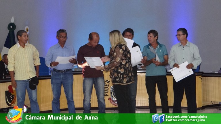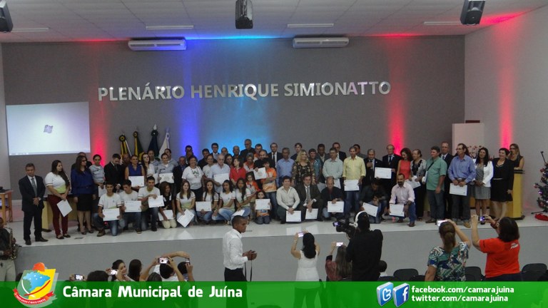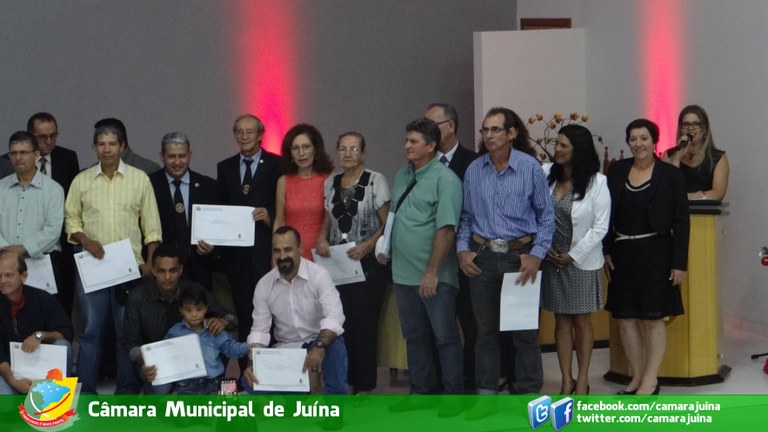 Fotos da Sessão Solene de entrega de títulos de Cidadão Juínense e de moções de Aplausos, realizada no dia 10/12/2015 as 20 horas no Plenário Henrique Simionatto.